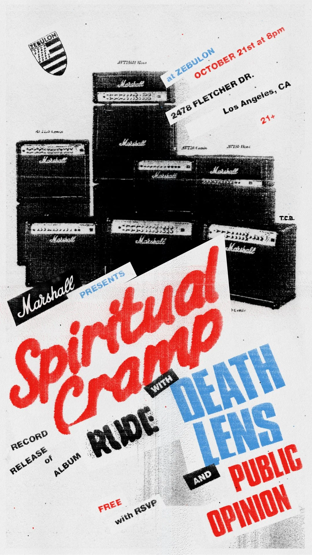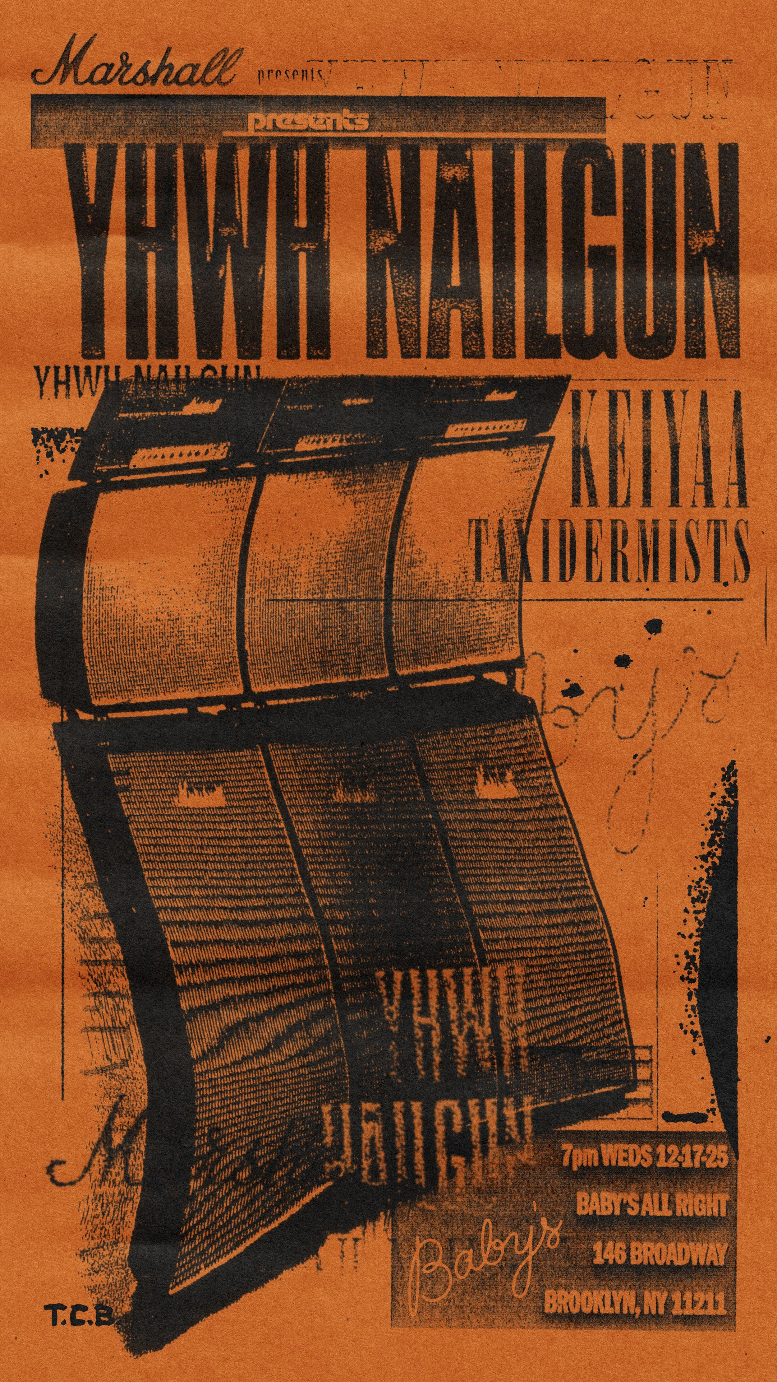 Poster designs for 2025 Marshall Amplifiers live showcases featuring Gustaf, Memo PST, Slumped, Nova Twins, Pleasure Pill, Death Lens, and Public Opinion at Zebulon, in Los Angeles and YHWH Nailgun, Keiyaa and Taxidermists at Baby’s All Right in Brooklyn, NY.